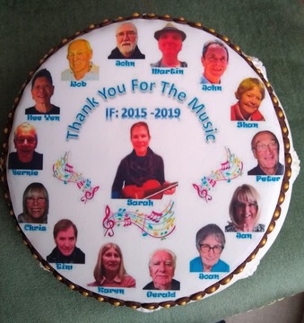 Cake designed and made as a farewell gift on behalf of Crewe and Nantwich U3A Instrumental Folk group by John Minshull. I ceased leading the group when I moved to Shrewsbury.
